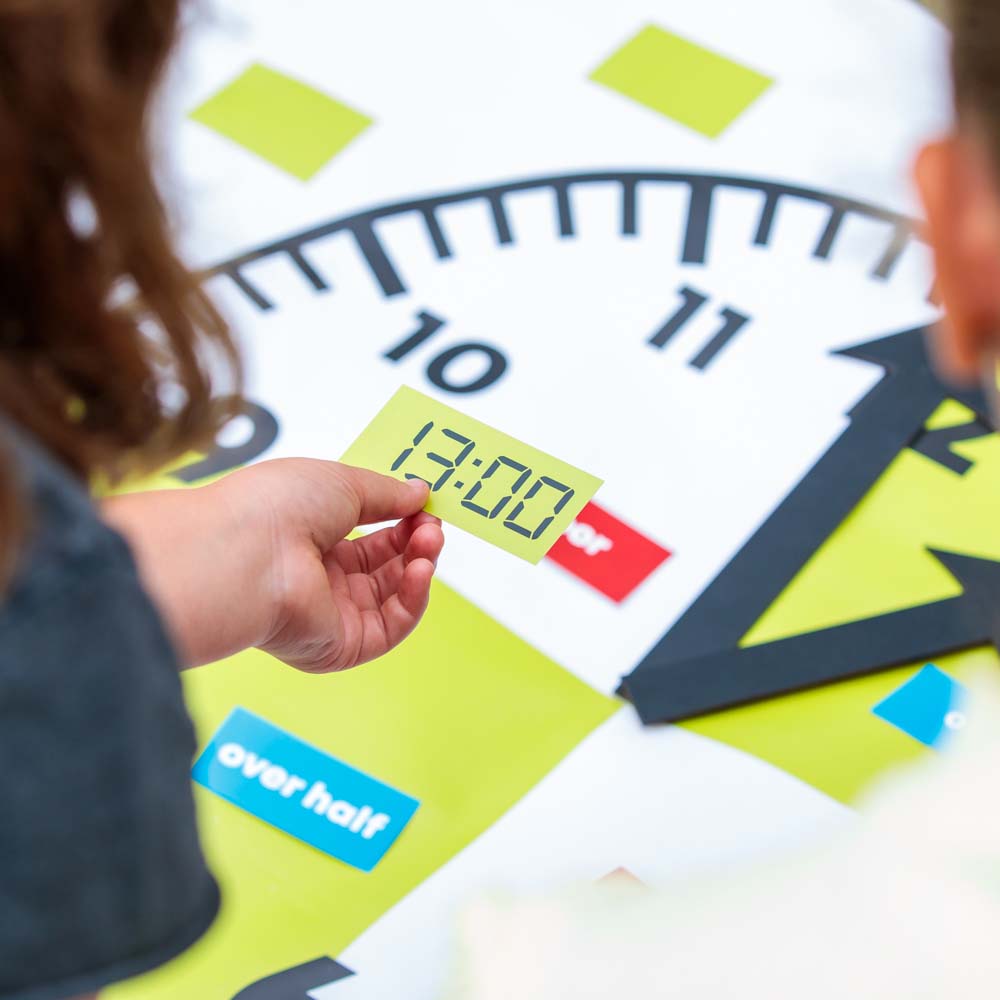 Met de klokmat laat je kinderen – op een speelse, bewegende en actieve manier – kennis maken met de analoge en digitale klok.